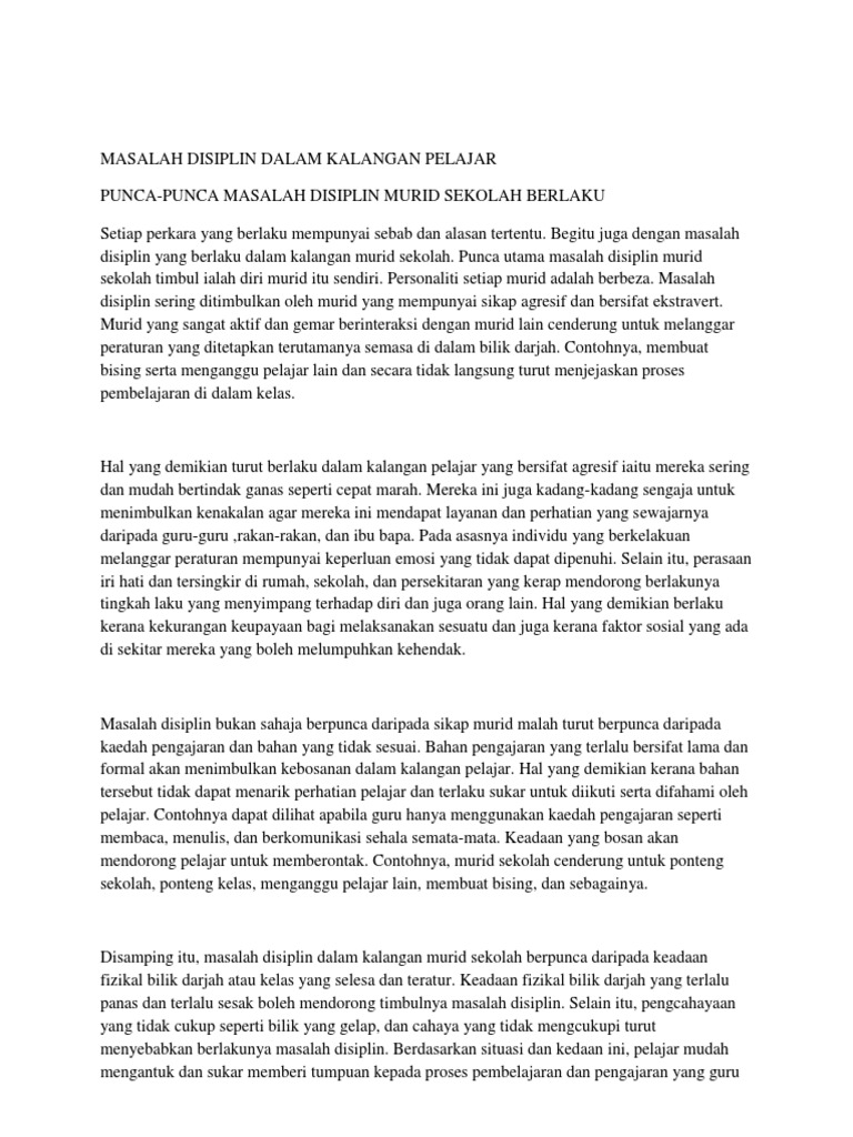 Mulailah dari perilaku yang mudah sesuaikan dengan usia murid. Konsep Disiplin Bilik Darjah. Isu masalah tingkah laku pelajar bukanlah sesuatu yang baharu namun cara.